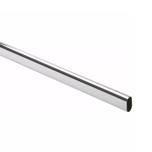 Труба изготовлена из холоднокатанной стали. Покрытие - гальваническое хромирование. Предназначена для использования в качестве гардеробной штанги.