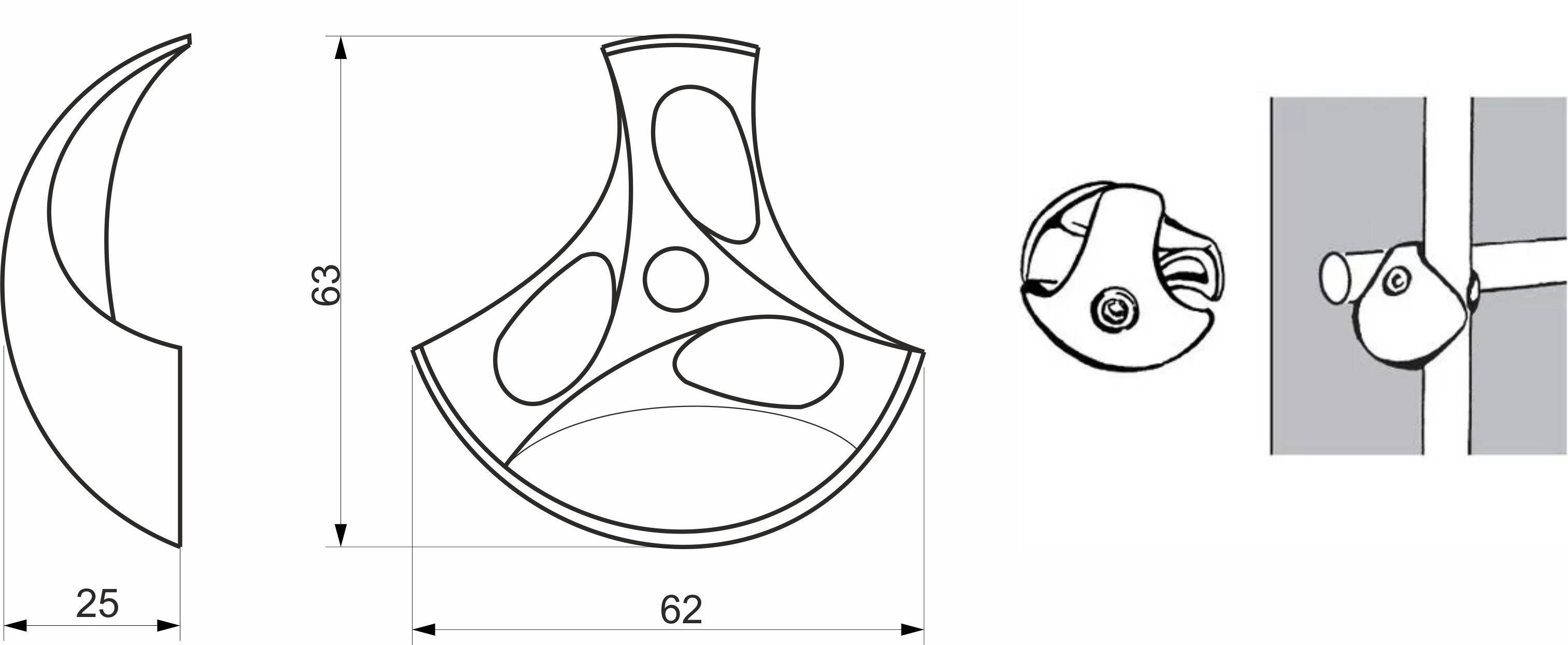Соединительный узел для перпендикулярного крепления 2-х труб d25, левыйПокрытие - вакуумное хромирование.