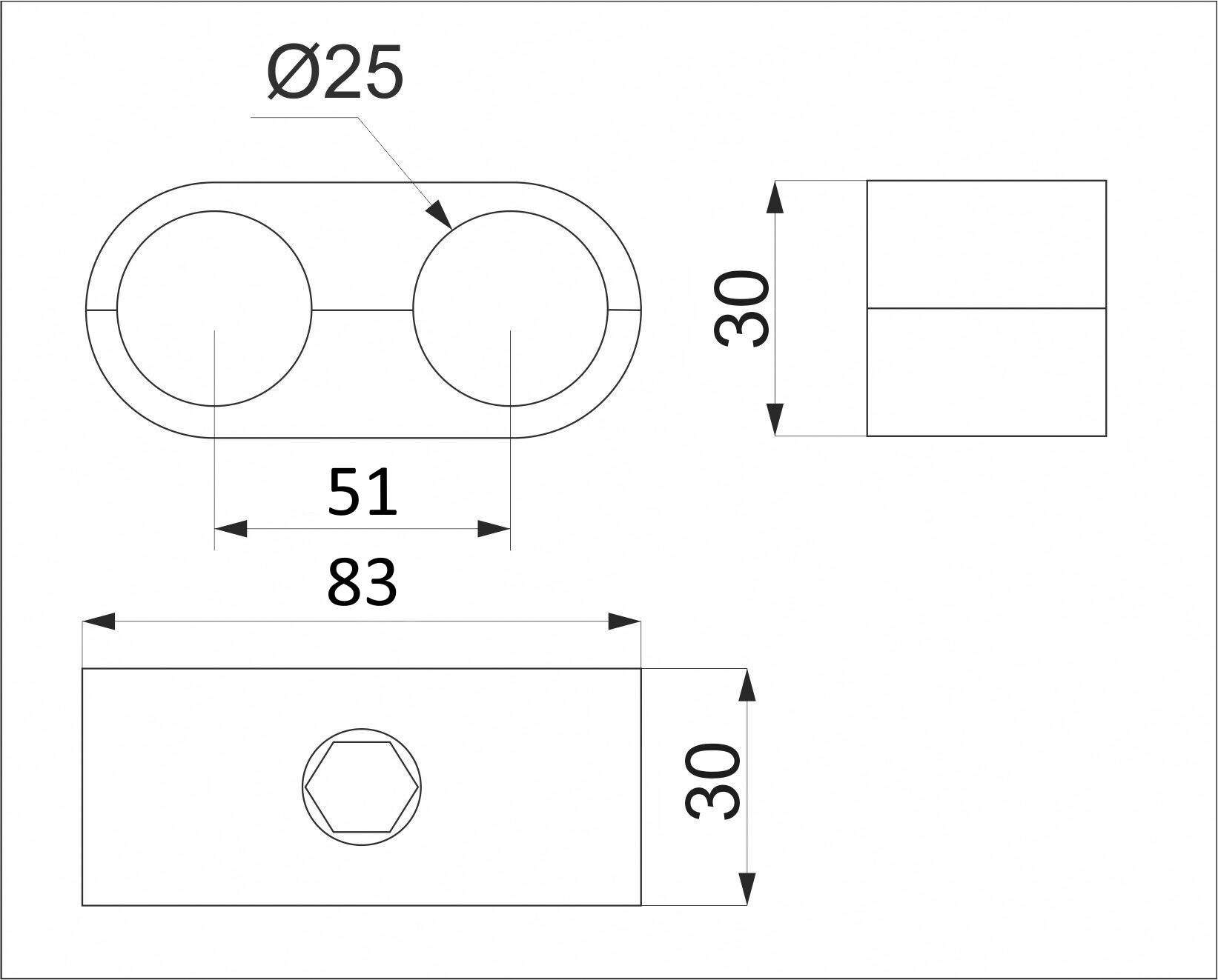 Соединитель 2-х труб d25 (503А) простой параллельный, хром AKS