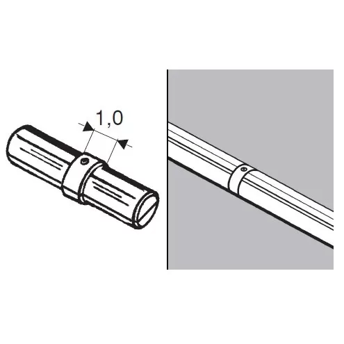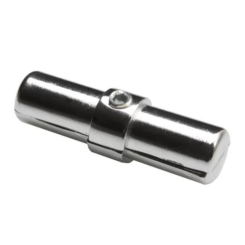 Соединитель предназначен для последовательного соединения 2-х труб d25 (торец в торец) за счет винта, который при вкручивании распирает внутри трубы две половинки соединителя.Покрытие - вакуумное хромирование.