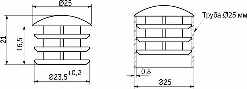 Заглушку используют, чтобы закрыть торец трубы d25 преимущественно в декоративных целях. Заглушка имеет хромированную поверхность, подходит для трубы с толщиной стенки 1,0 мм