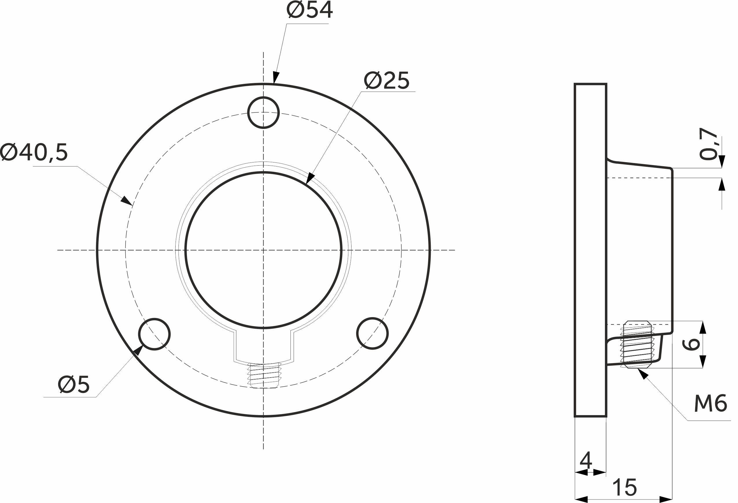 Материал: сталь. Используется для фиксации трубы d25 к поверхности. Каждая розетка упакована в индивидуальный пакет. Имеет винт (для фиксации трубы в розетке), который вкручен в розетке. Для кручивания винта понадобится шестигранный ключ 3 мм