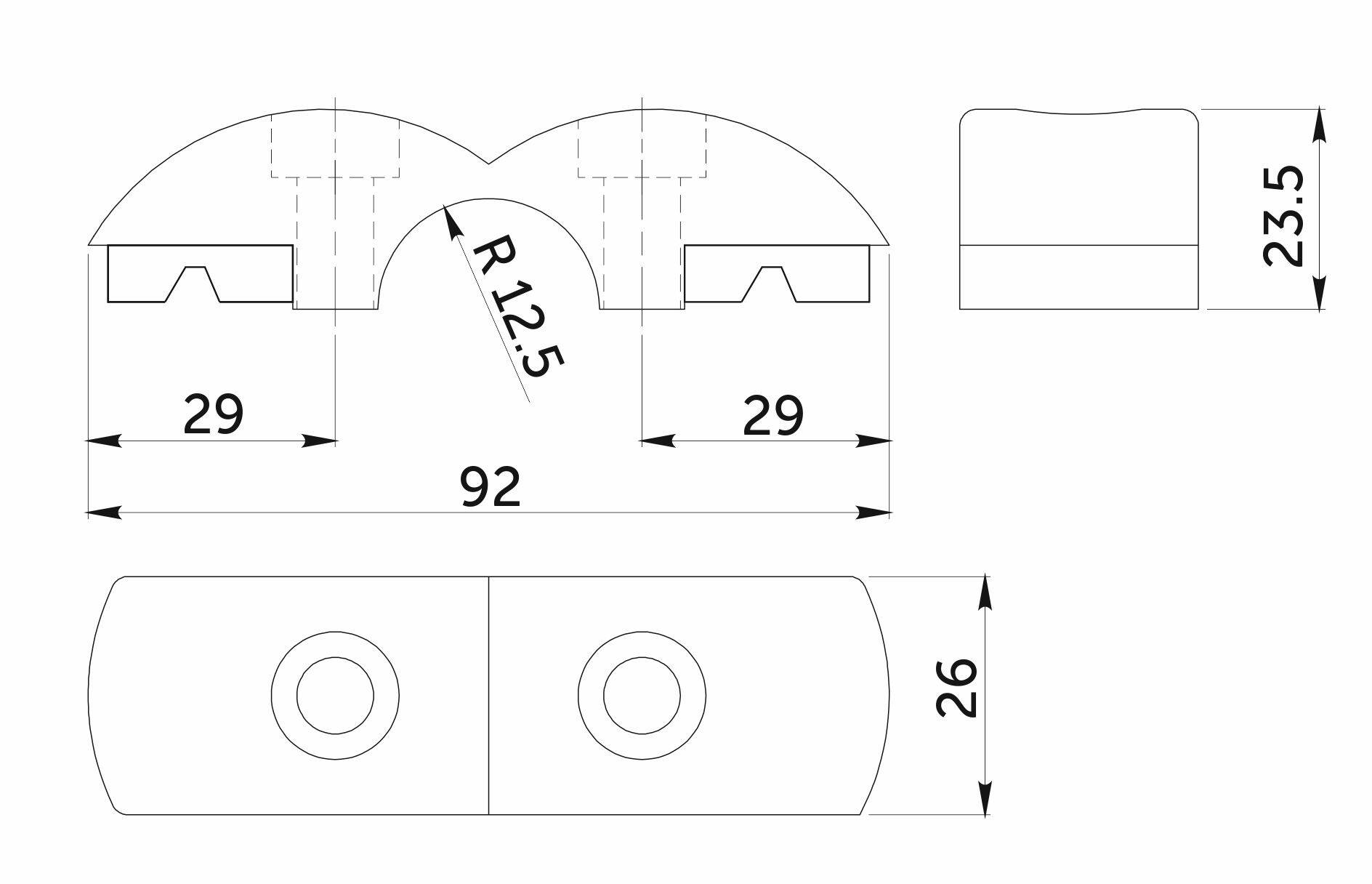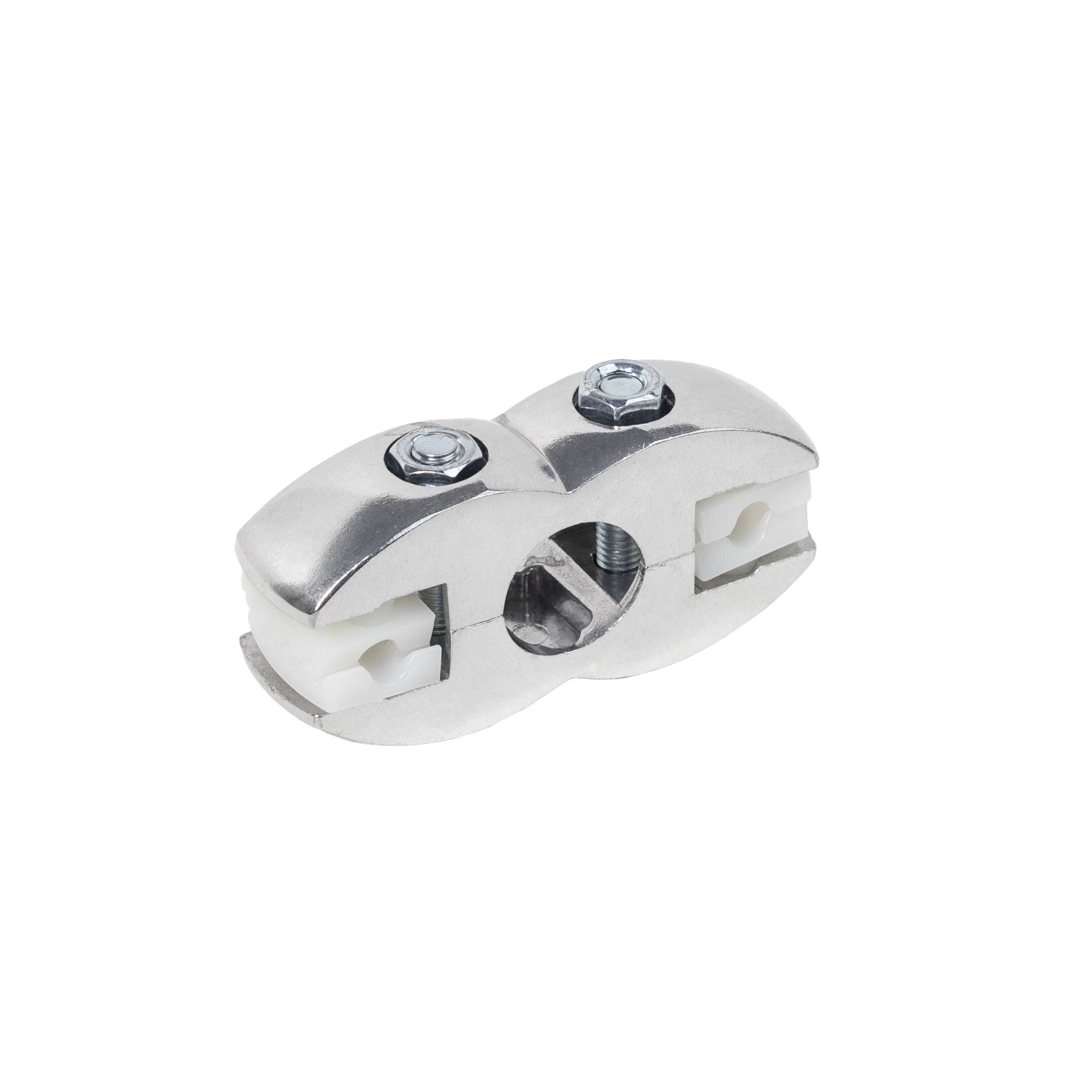 Предназначен для крепления к трубе d25 плит, панелей, стекла. В комплектацию входят пластиковые вкладыши для более плотного соединения металлического соединителя с плитой.