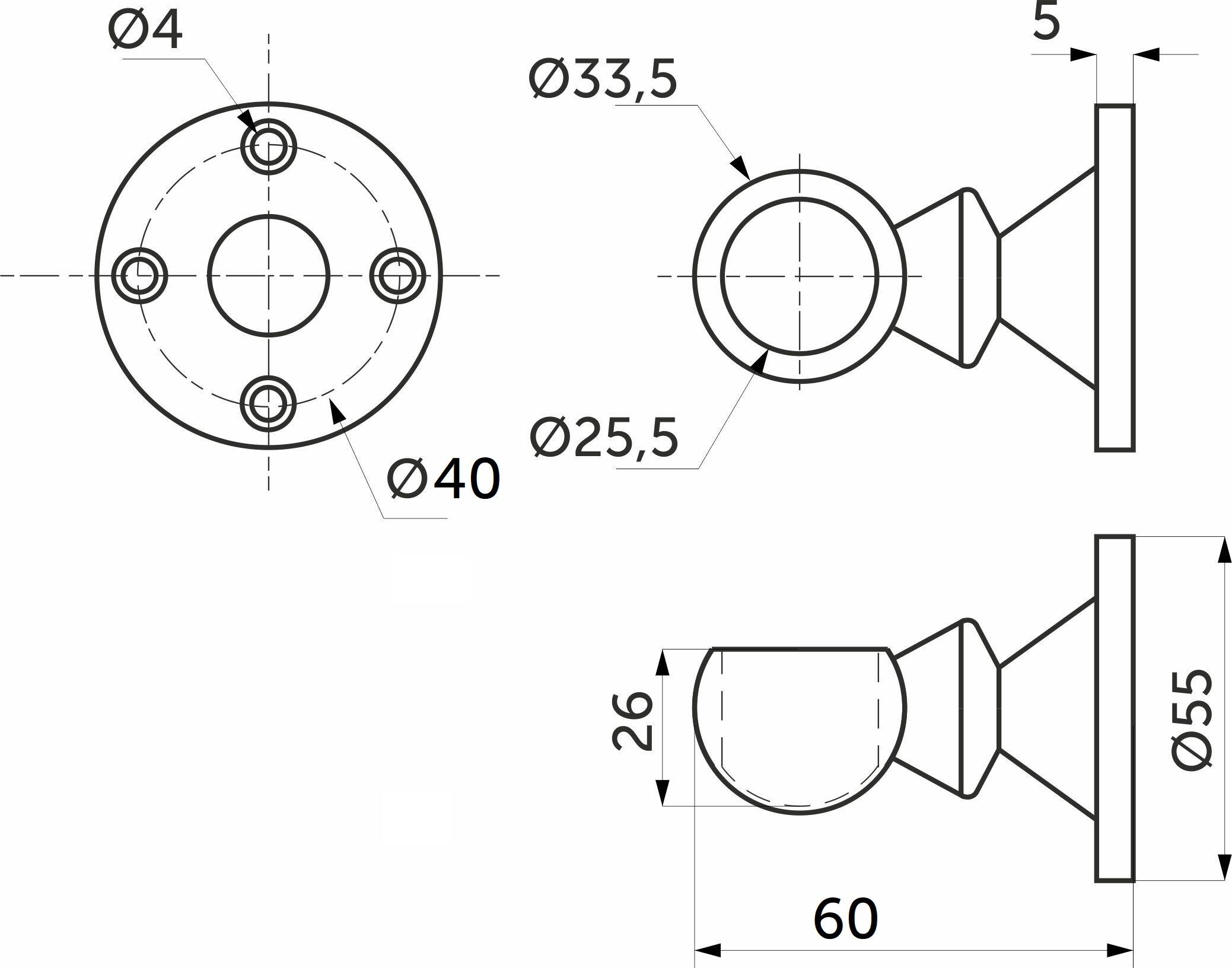 Используются для фиксации трубы d25 параллельно поверхности. Крепление устанавливается в торце трубы.