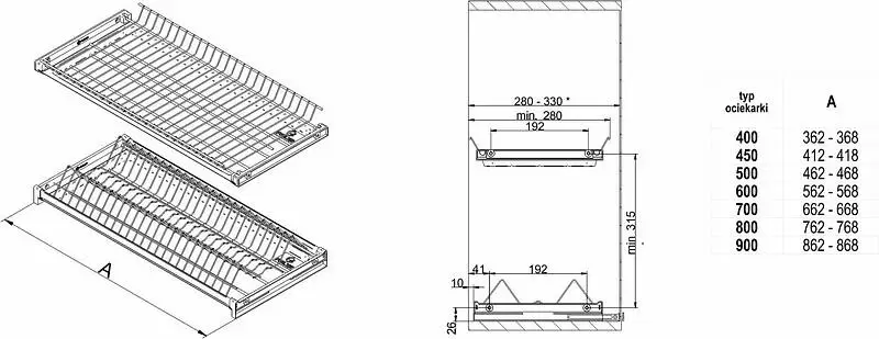 Сушка Variant 3 имеет прутья толщиной 2/5мм., регулируемое крепление с алюминиевым профилем (позволяет делать глубину ящика 275-330 мм). Для корпуса толщиной 16-18 мм.
