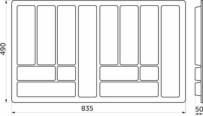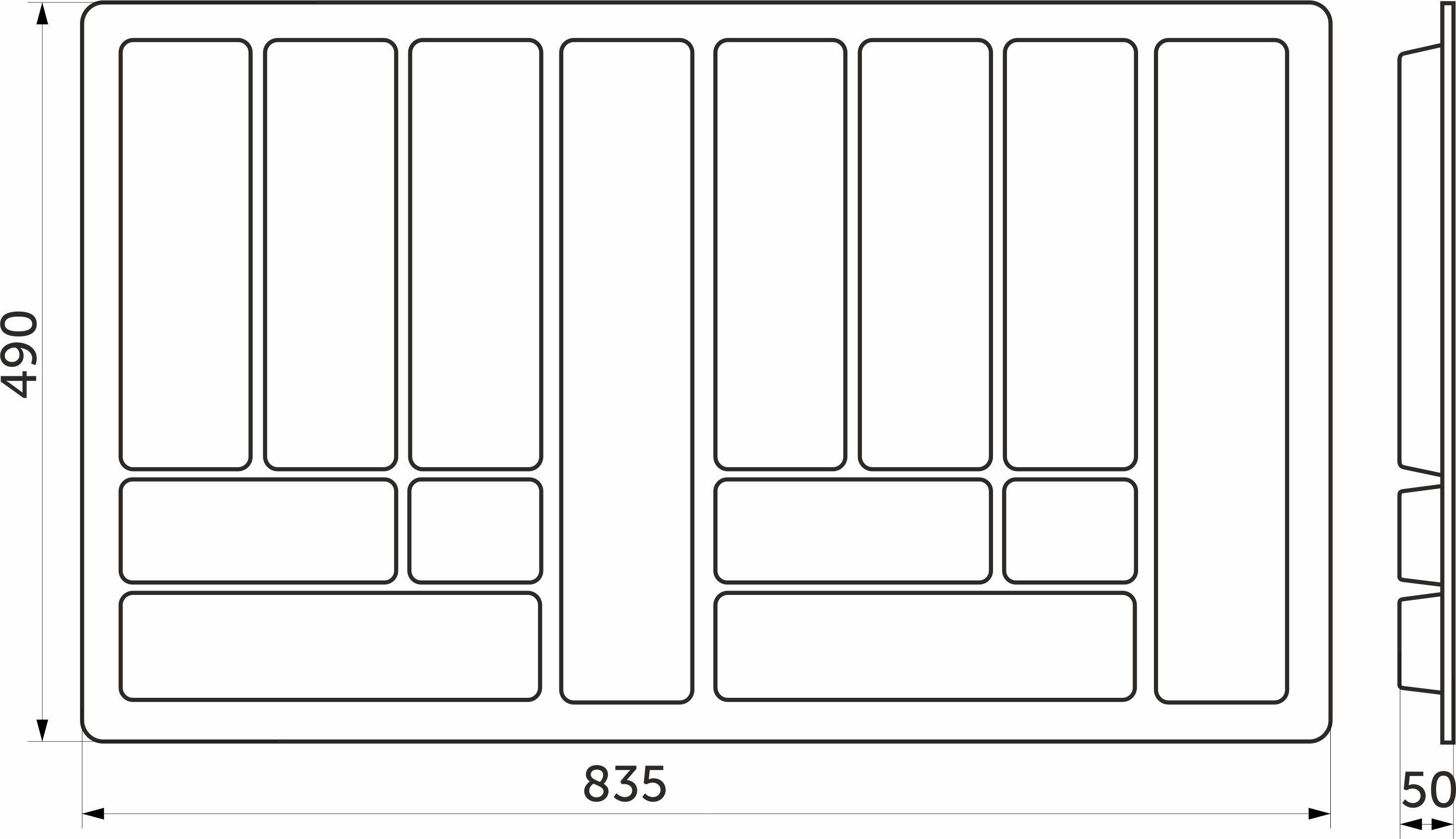 Вкладыш COMFORT 90/490 используется для размещения кухонных металлик. Многофункциональный и вместительный, выполнен из пищевого пластика. Цвет: металлик.