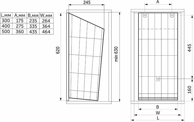 Корзина используется для хранения белья перед стиркой. Корзина навешивается на фасад внутри ящика. Как правило, для удобства фасад-дверь устанавливается снизу на петли, сверху ставится проводник барный (левый+правый).