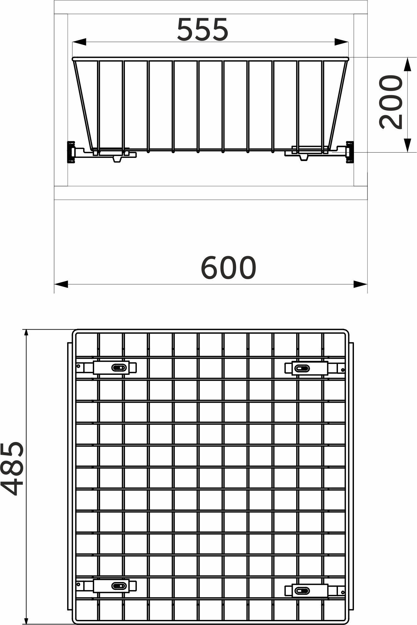 Корзина используется для хранения одежды/белья. В дополнение необходимо приобрести шариковые или роликовые направляющие L-450 (не входят в комплектацию). Минимальная глубина шкафа под корзину должна быть не менее 485 мм (габаритный размер/глубина корзины вне зависимости от размера).