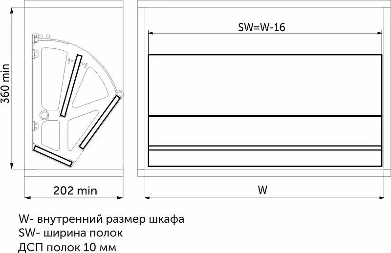 Крепление пластиковое 2-уровневое (веер) предназначено для изготовления ящика для обуви с откидными полками. Крепление монтируется на боковые стенки ящика (справа и слева), также к креплению крепится фасад и полка (или несколько полок) из ДСП, фанеры или дерева. При открывании фасада откидывается полка для обуви.