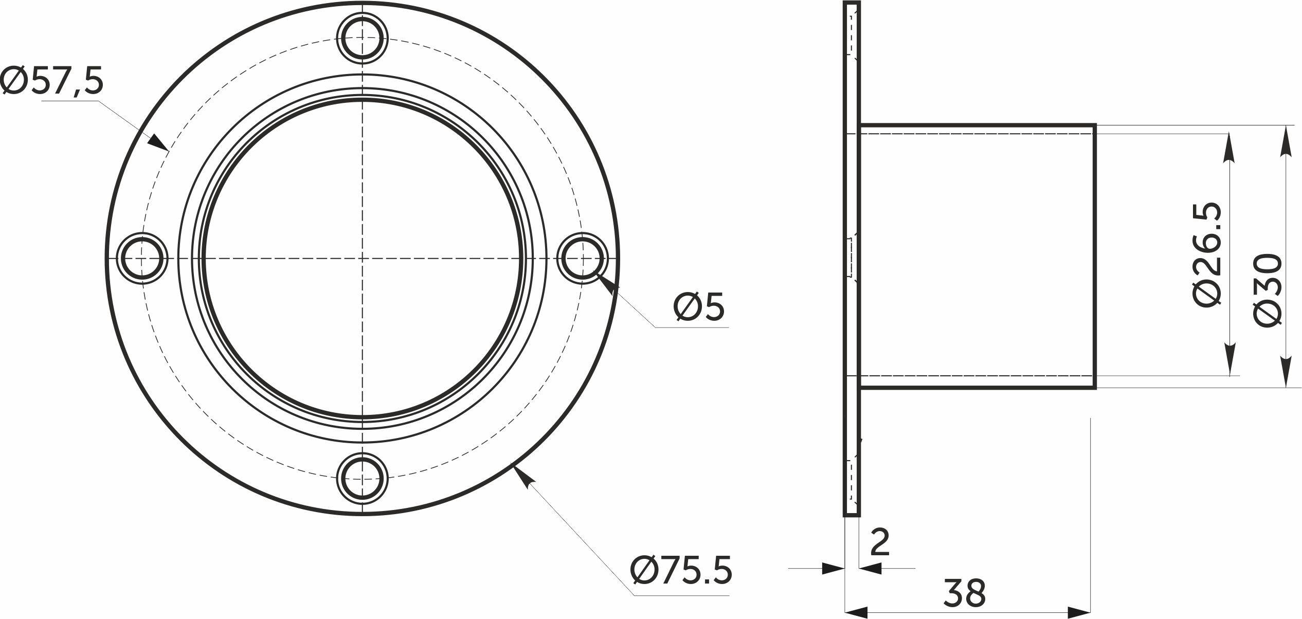 Крепление (розетка) трубы d25 (510D) усиленное высокое, хром AKS