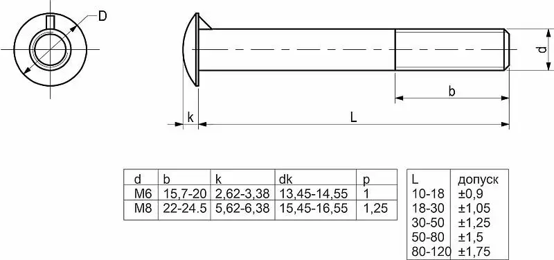 Болт с полукруглой головкой и усом DIN 607 еще называют болт мебельный, болт замковый, он же болт с увеличенной полукруглой головкой и усом.