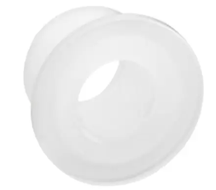 Шайба-втулка пластиковая с буртиком – крепежный элемент, применяемый для крепления к стеклу различной фурнитуры при помощи винта, болта, шурупа. Изготавливается из пластика. Состоит из шляпки диаметром 9,5 мм и основания Ø6,9 мм. В центре находится сквозное отверстие Ø4 мм. Высота изделия составляет 6,8 мм. Толщина шляпки – 2 мм. Данная втулка вставляется в отверстие в стекле, а металлический крепеж вкручивается не в стекло, а в пластиковую втулку, которая предохраняет хрупкий материал от сколов и трещин, дает возможность приложить большее усилие и лучше затянуть крепеж, предотвращает самоотвинчивание крепежного изделия, чаще всего используют в мебельном производстве для крепления к стеклу или зеркалу ручек, петель. Толщина стекла от 5 мм.