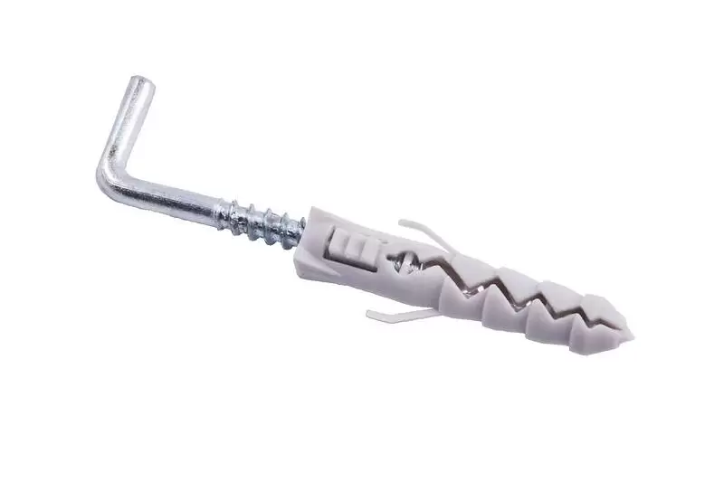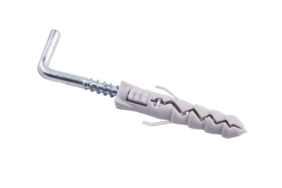 Дюбель распорный с прямым крюком применяется для крепления элементов мебели к стене путем навешивания.