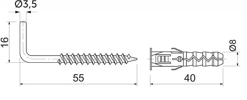 Длина шурупа-крюка: 50 мм