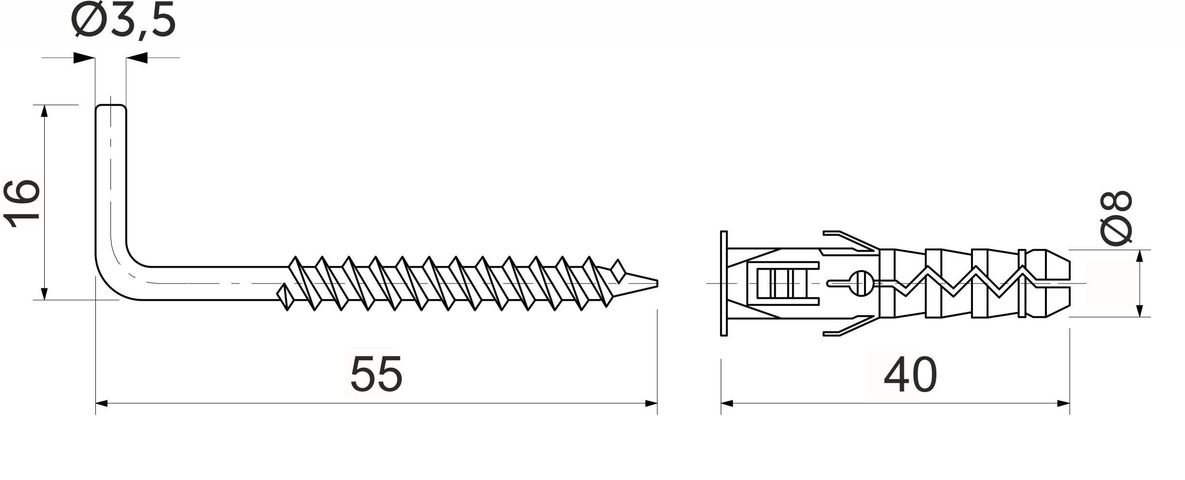 Дюбель распорный с прямым крюком применяется для крепления элементов мебели к стене путем навешивания.