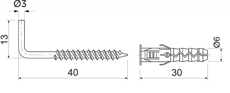 Длина шурупа-крюка: 40 мм