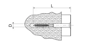 Дюбель-гвоздь используется для крепления предметов к плотным полнотелым материалам, например, кирпичу, бетону, камню. Дюбель имеет ограничительную манжету, чтобы при забивании дюбель-гвоздя он не проваливался в просверленное отверстие.