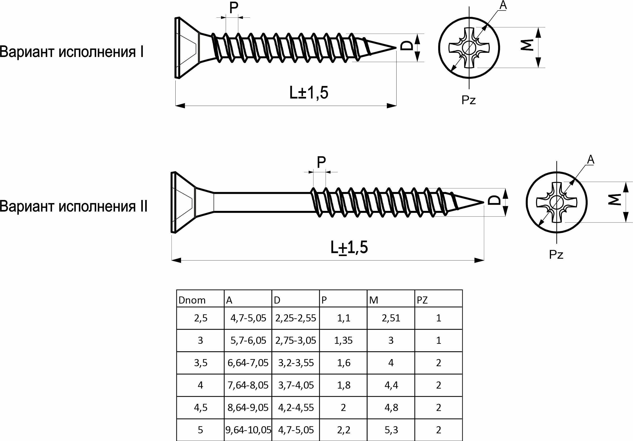 Имеет крестообразный шлиц PZ и острый наконечник (монтаж можно осуществлять отверткой, а также использовать шуруповерт с битой PZ). Универсальные саморезы имеют средний шаг резьбы и часто применяются в мебельном производстве и строительстве для крепления материалов из дерева, ДВП и ДСП.