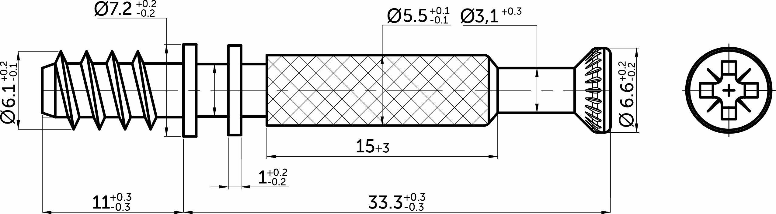 Цельнометаллический шток эксцентрика (шпилька, винт) является составной частью эксцентриковой стяжки и подходит для всех эксцентриков (бочонков) диаметром 12 и 15 мм любой высоты от 10 мм до 17 мм.