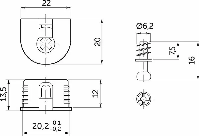 Эксцентриковая стяжка быстрого монтажа 20 мм бежевая + шток 6*7мм (уп/0,2тыс.шт) GRIDLI