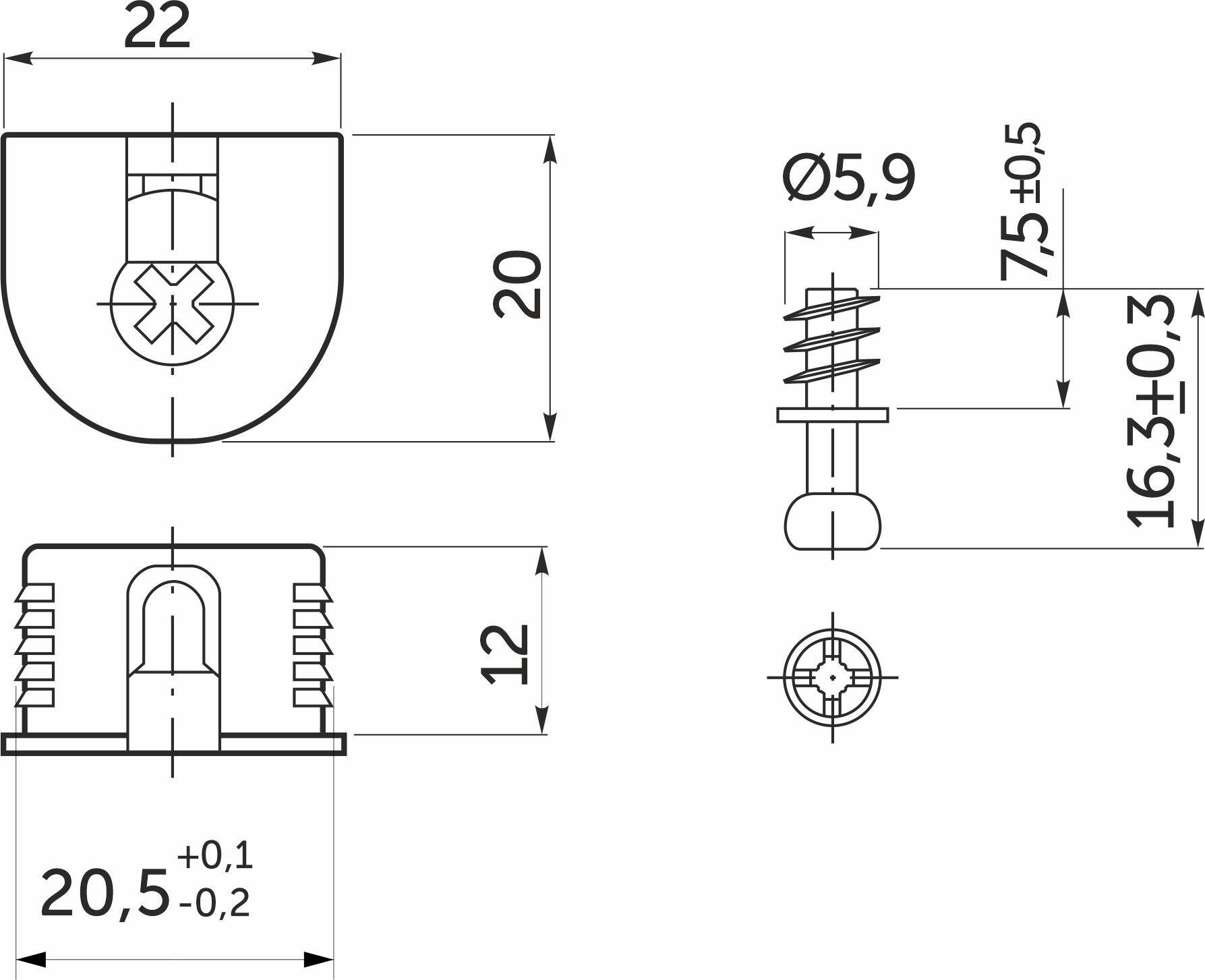 Эксцентриковая стяжка быстрого монтажа (еще ее называют стяжкой для полок, полкодержателем или «рафиксы») в пластиковом корпусе белого цвета идет в комплекте со штоком с евро –винтом для вкручивания непосредственно в ДСП.