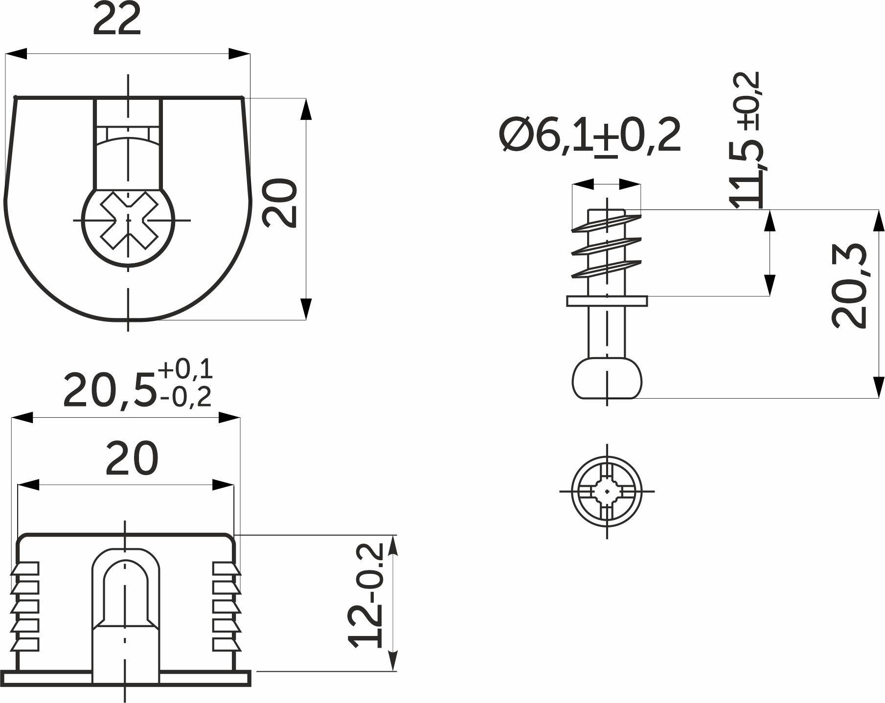 Эксцентриковая стяжка быстрого монтажа (еще ее называют стяжкой для полок, полкодержателем или «рафиксы») в пластиковом корпусе серого цвета идет в комплекте со штоком с евро –винтом для вкручивания непосредственно в ДСП.