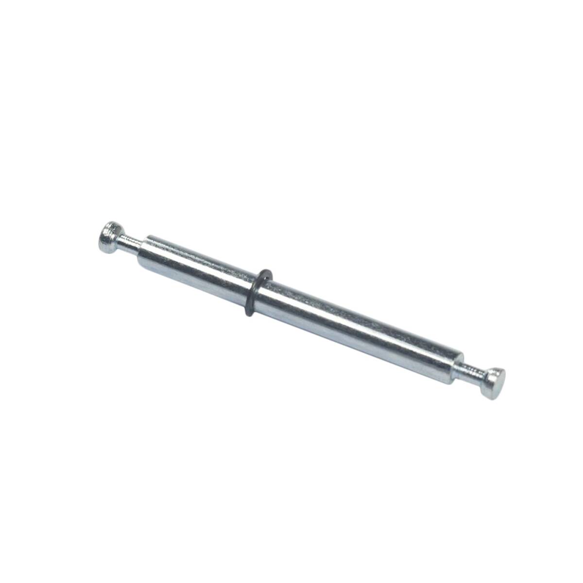 Двухсторонние штоки эксцентрика применяются совместно с эксцентриками (бочонками) и их особенность заключается в том, что они позволяют стягивать одновременно 3 детали мебели. Они могут быть прямыми (с разделительным кольцом или без) и угловыми. Частным видом углового штока является шарнирный двухсторонний шток, который дает возможность соединить детали под углом отличным от 90 градусов. Данный тип соединения обеспечивает прочное и надежное соединение деталей на разрыв и позволяет многократно выполнять сборку и разборку мебели.