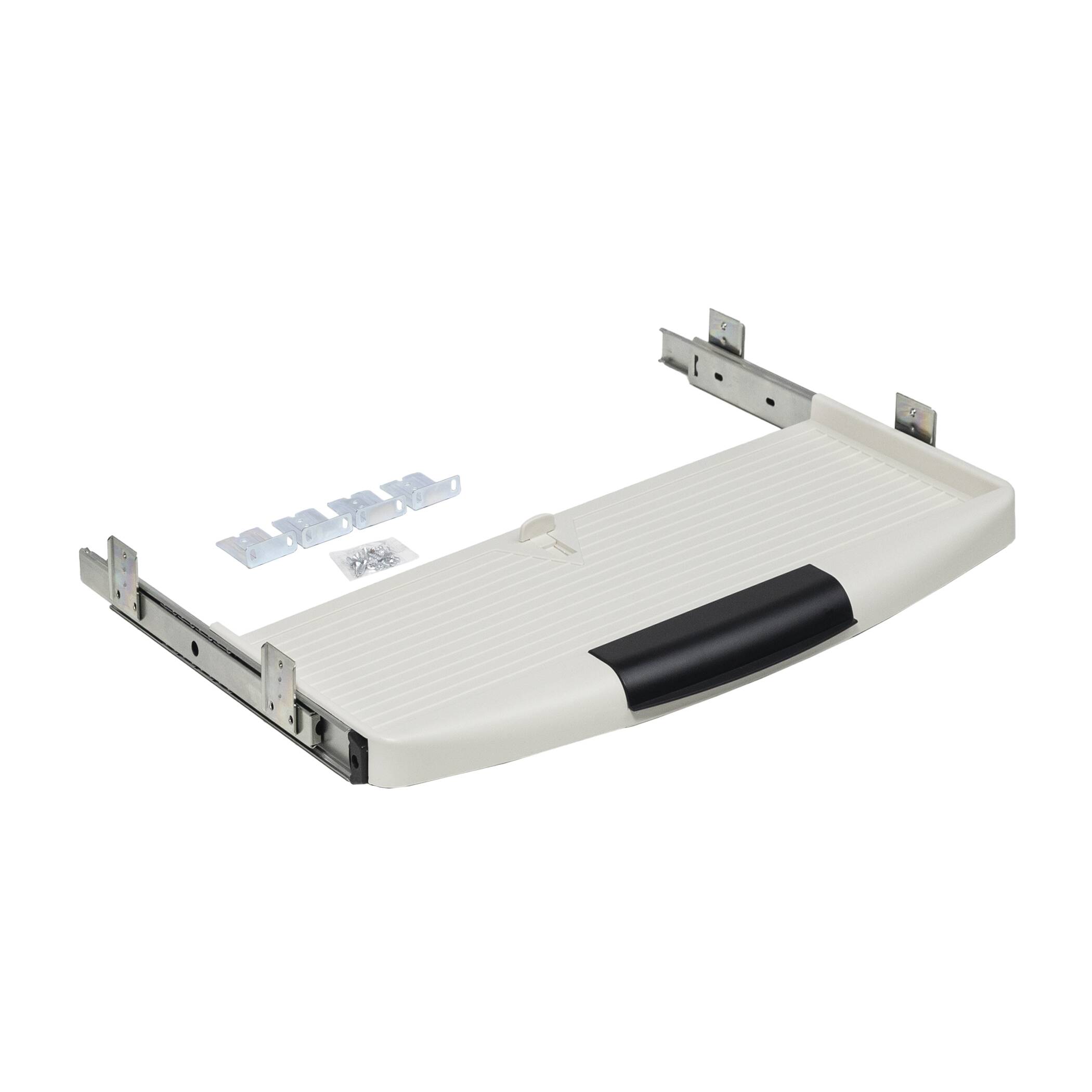 Пластиковая полка под клавиатуру с шариковыми направляющими. Является прекрасным дополнением для эффективной организации рабочего места за компьютерным столом. Ширина у полки 545 мм.