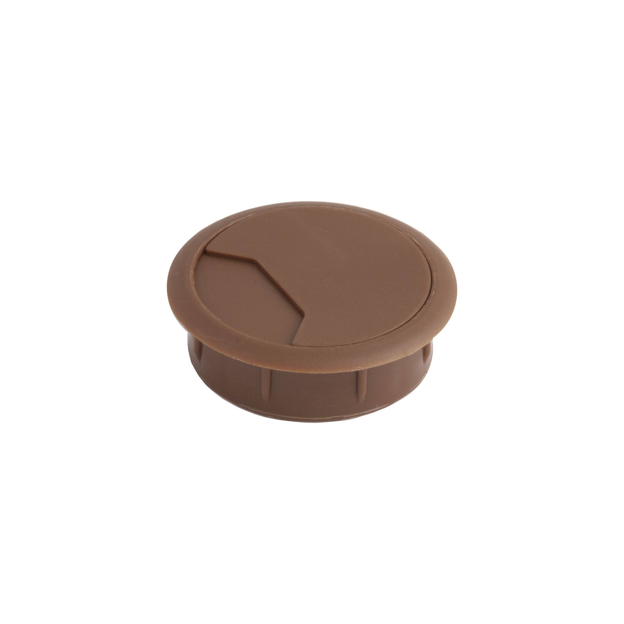 Пропуск кабельный пластиковый врезной. Габаритный диаметр изделия 70мм, размеры отверстия в столешнице - d60мм. Внутри пропуска есть съемная крышка, которая частично либо полностью закрывает отверстие для кабеля.