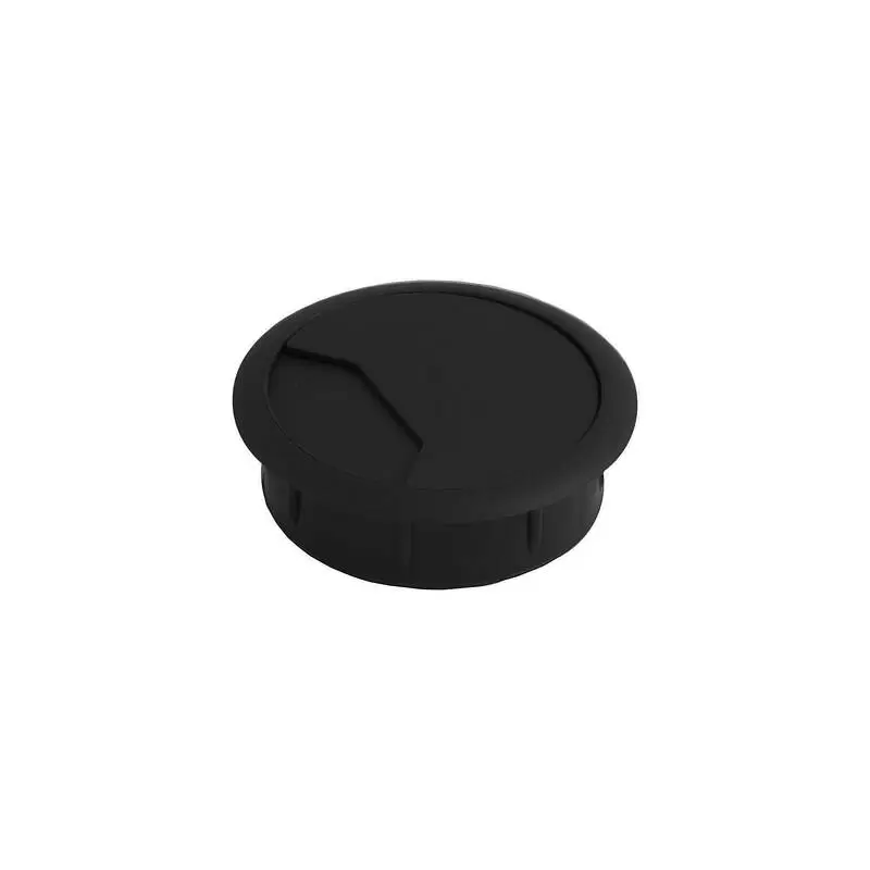 Пропуск кабельный пластиковый врезной. Габаритный диаметр изделия 70мм, размеры отверстия в столешнице - d60мм. Внутри пропуска есть съемная крышка, которая частично либо полностью закрывает отверстие для кабеля.