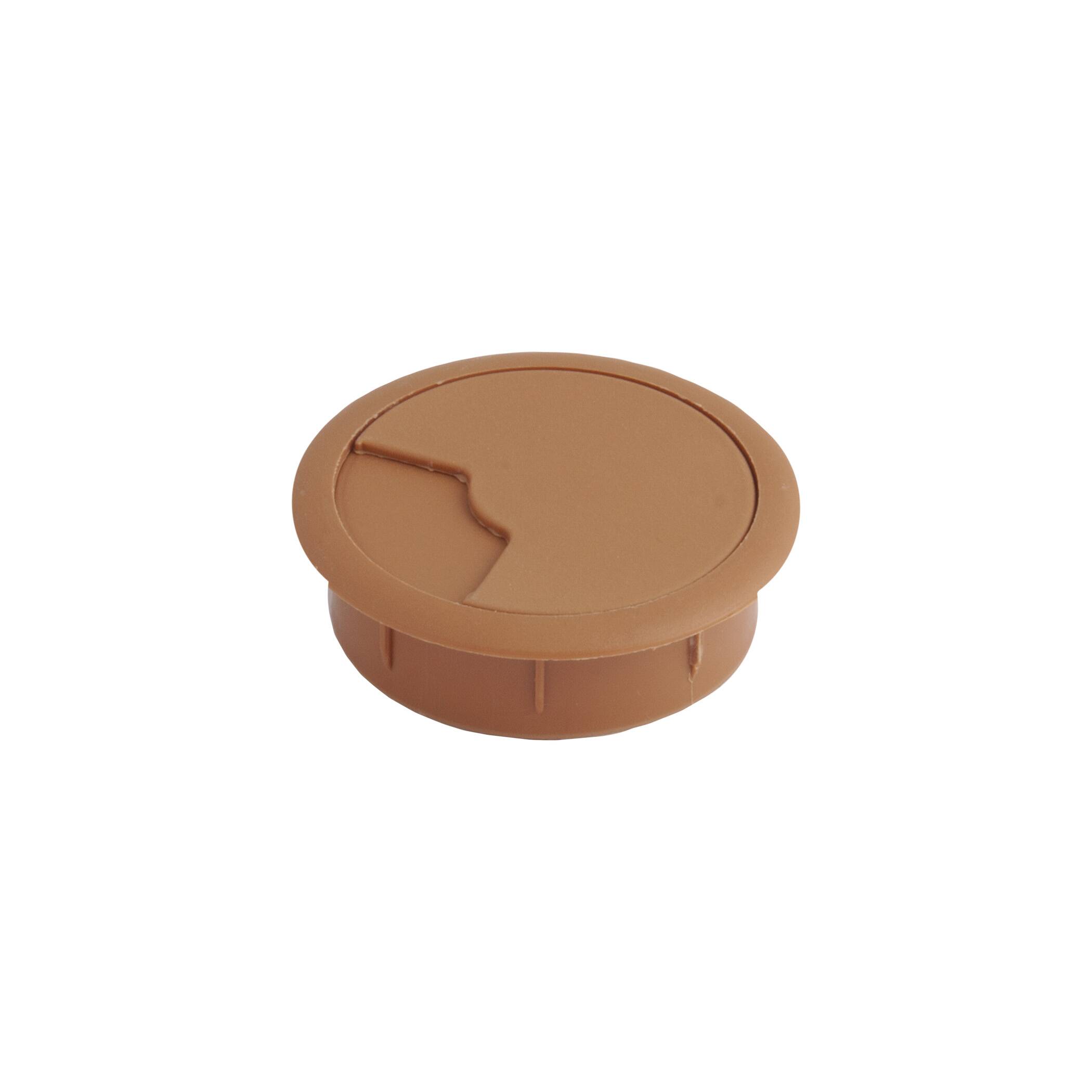 Пропуск кабельный пластиковый врезной. Габаритный диаметр изделия 70мм, размеры отверстия в столешнице - d60мм. Внутри пропуска есть съемная крышка, которая частично либо полностью закрывает отверстие для кабеля.