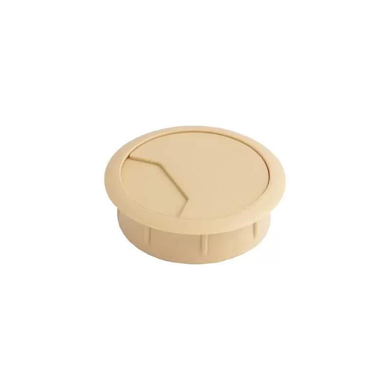 Пропуск кабельный пластиковый врезной. Габаритный диаметр изделия 70мм, размеры отверстия в столешнице - d60мм. Внутри пропуска есть съемная крышка, которая частично либо полностью закрывает отверстие для кабеля.