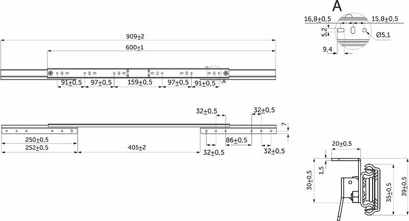 Направляющие наружного крепления возможно устанавливать и с внутренней стороны царги. Для этого необходимо, чтобы общая длина направляющей в раскрытом положении была меньше длины царги. Если длина направляющей больше длины царги, необходимо сделать фрезеровку перпендикулярных царг.