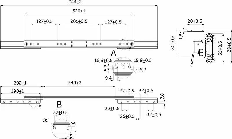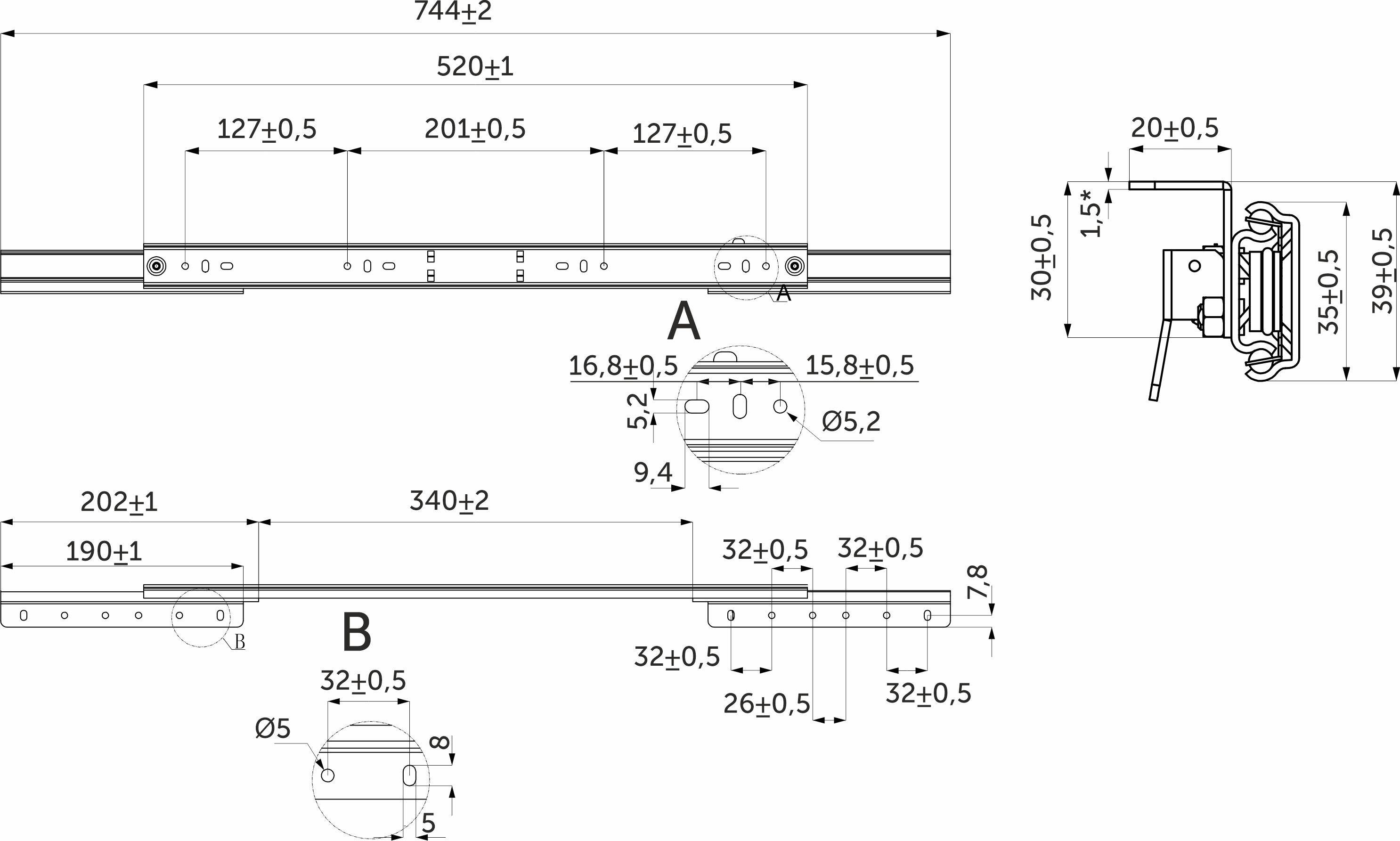 Направляющие наружного крепления возможно устанавливать и с внутренней стороны царги. Для этого необходимо, чтобы общая длина направляющей в раскрытом положении была меньше длины царги. Если длина направляющей больше длины царги, необходимо сделать фрезеровку перпендикулярных царг.