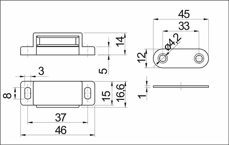 Защелка магнитная мебельная применяется для надежного фиксирования дверей на шкафчиках.