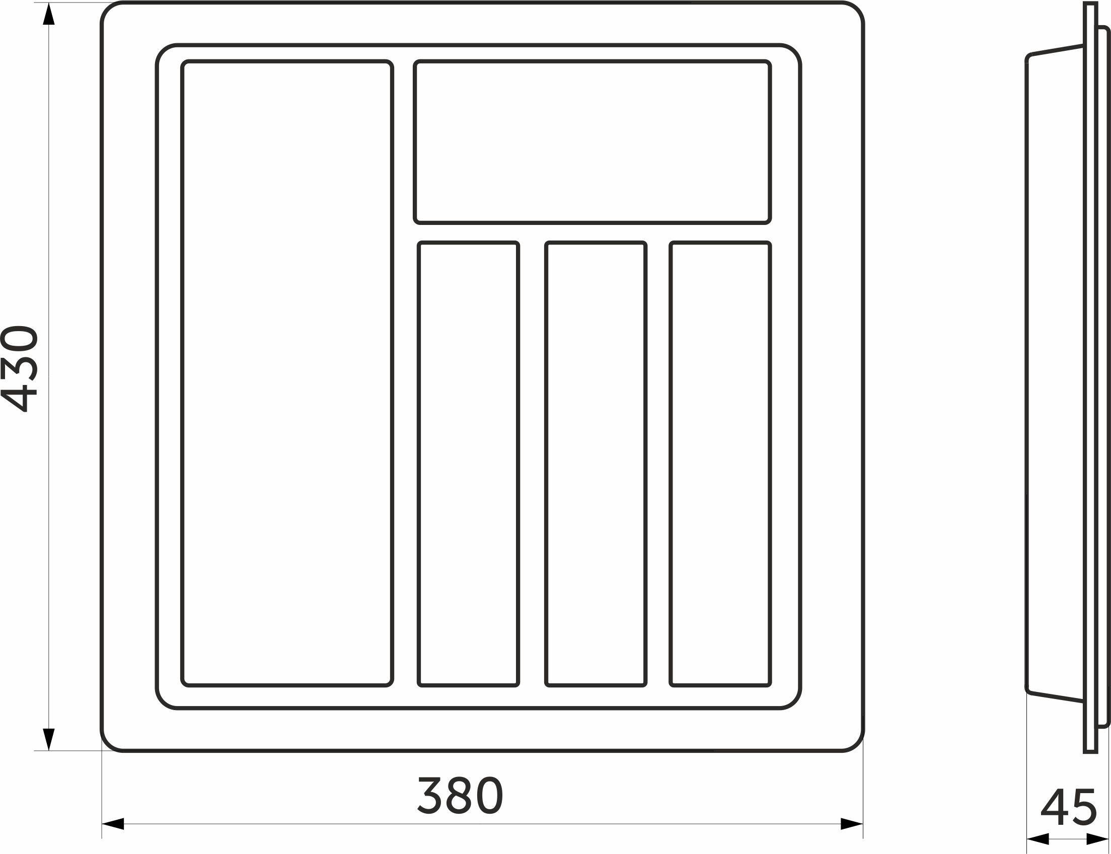 Вкладыш STANDARТ 45/430 используется для размещения кухонных принадлежностей. Многофункциональный и вместительный, выполнен из пищевого пластика. Шуфлядный вкладыш устойчив к влаге и не деформируется при длительном использовании. Цвет металлик.