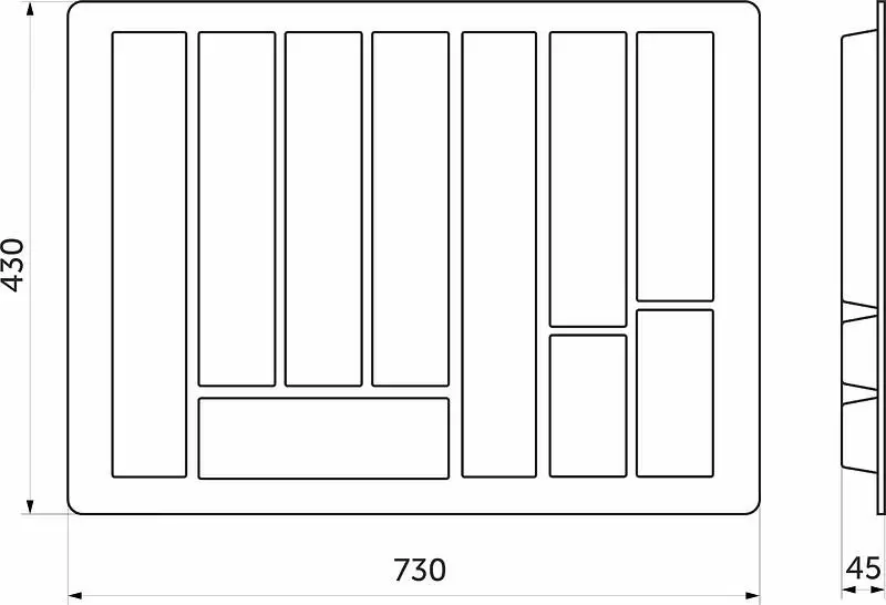 Вкладыш STANDARТ 80/430 используется для размещения кухонных принадлежностей. Многофункциональный и вместительный, выполнен из пищевого пластика. Шуфлядный вкладыш устойчив к влаге и не деформируется при длительном использовании. Цвет металлик.