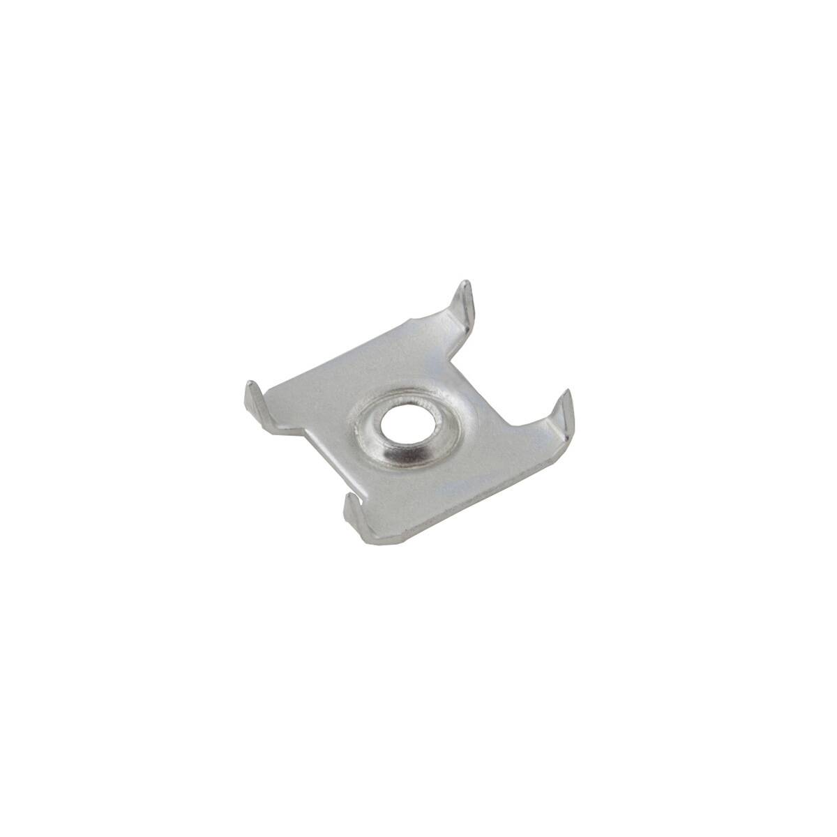Шайба-скрепка металлическая предназначена для крепления задних стенок ДВП между собой. Зубья шайбы-скрепки "впиваются" в два состыкованных между собой листа ДВП, а через центральное отверстие в шайбе с помощью самореза происходит притягивание соединения к корпусу изделия. Толщина металла 0,8 мм, размер самой шайбы 14мм*20мм.
