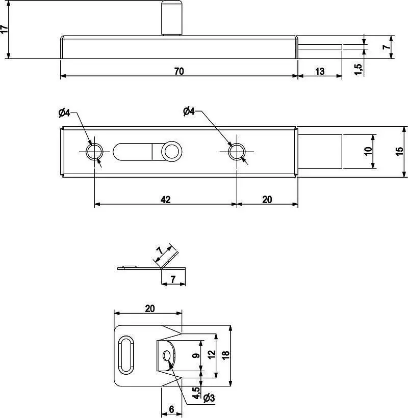 Это специальный простой в монтаже механизм, который служит для фиксации и запирания дверей мебели. Данный шпингалет характеризуется своими минималистическими размерами.