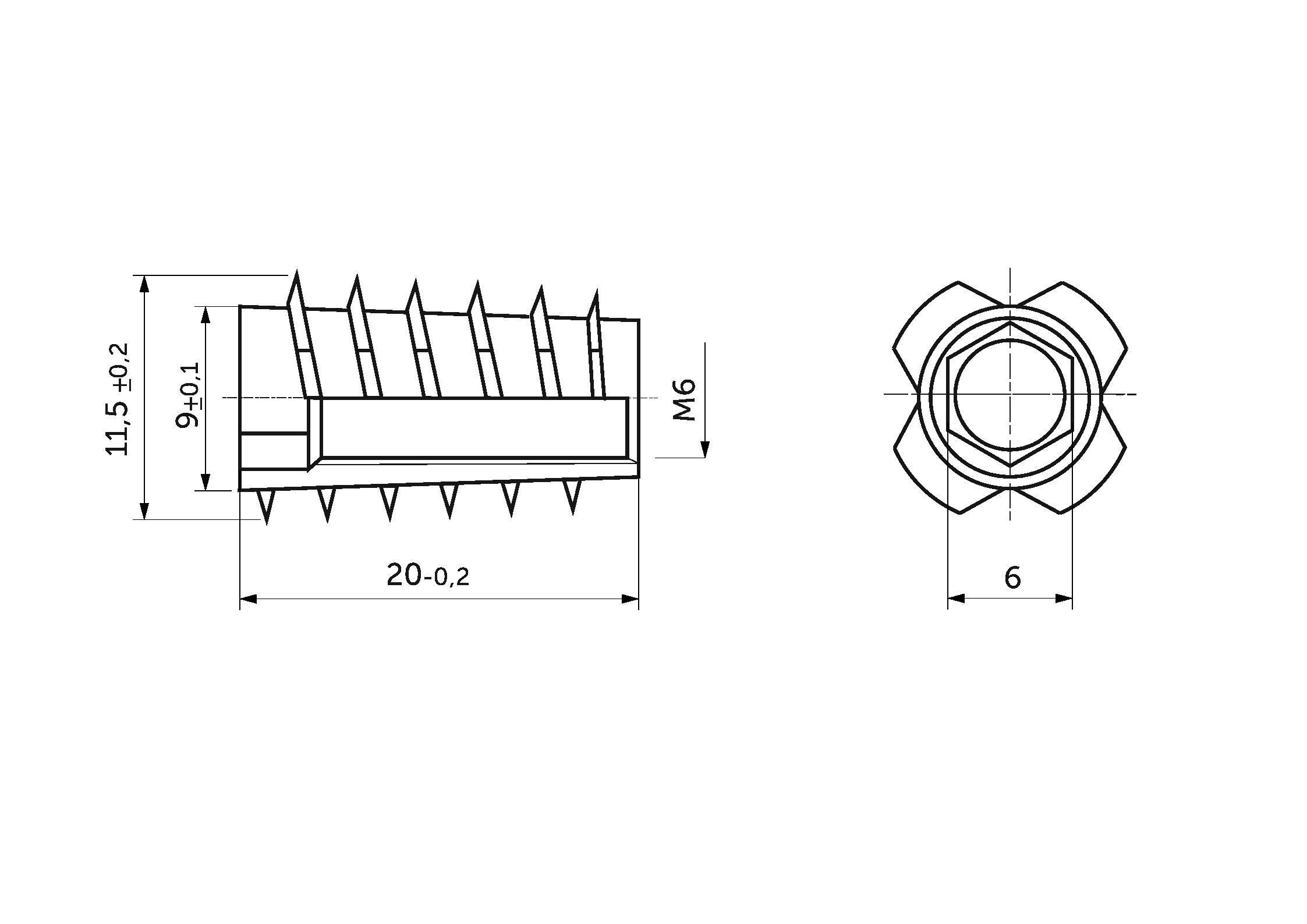 Гайка Rampa М6*11.7*20 с шестигран. углублением и конич. внешн. резьбой (уп/1тыс.шт), AKS
