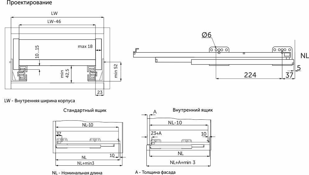 Направляющие скрытого монтажа предназначены для потайной (под ящиком) установки с минимальным зазором между стенкой корпуса и стенкой ящика. Направляющая выполнена из прочной холоднокатаной стали с ходом в полное выдвижение. Присутствует механизм отталкивания. Данные направляющие с гарантированной нагрузкой до 25 кг и циклом жизни в 80 000 открываний / закрываний. Предназначены для систем хранения в шкафах, кухонных гарнитурах и других изделиях, требующих высокий запас прочности. Подходят под все толщины материалов корпуса ящика до 16 мм включительно. Регулирование высоты фронта: + 3 мм.