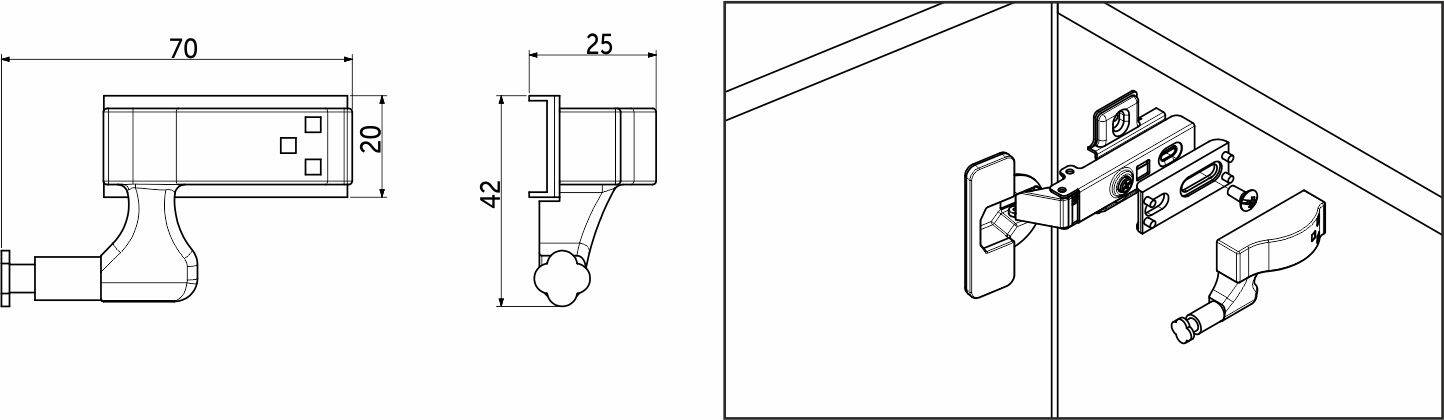 Подходит для накладных, полунакладных и внутренних петель AKS и GRIDLI (кроме петель без пружины и с пружиной обратного действия)