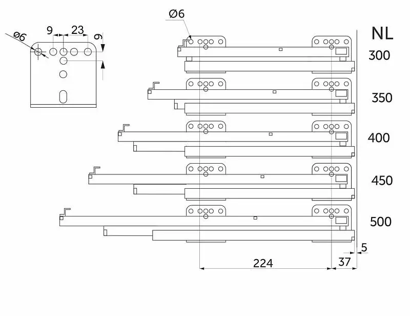 Направляющая скрытого монтажа L-300 с доводчиком ДСП до16mm с замками AKS SLIM SLIDE полное выдвижение
