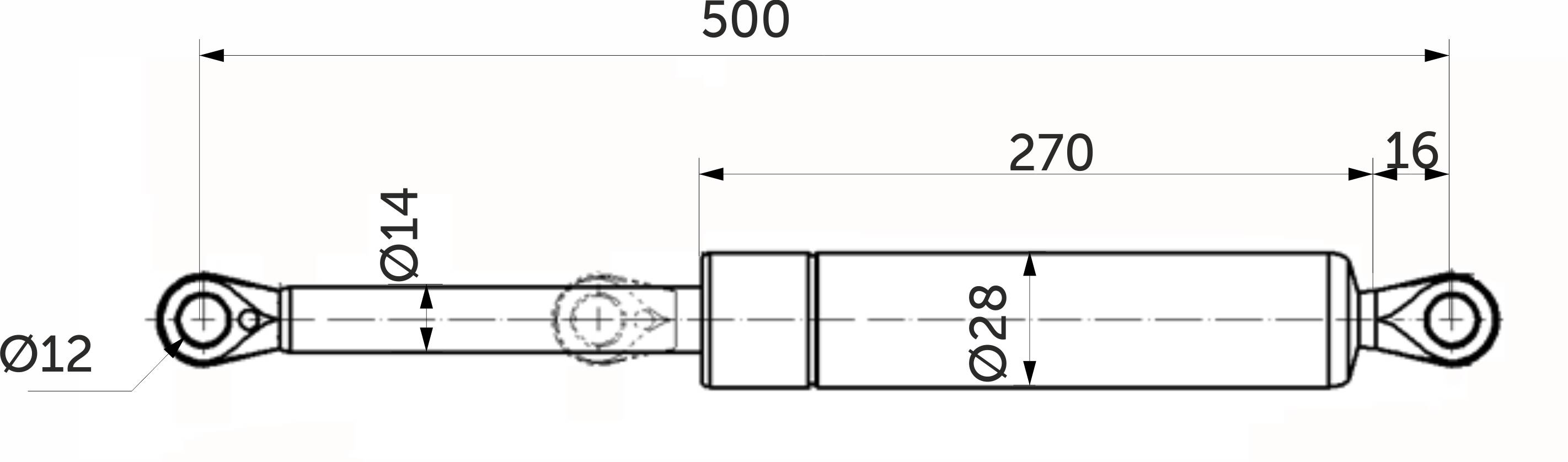Длина между центрами проушин в разжатом состоянии L=500 мм.