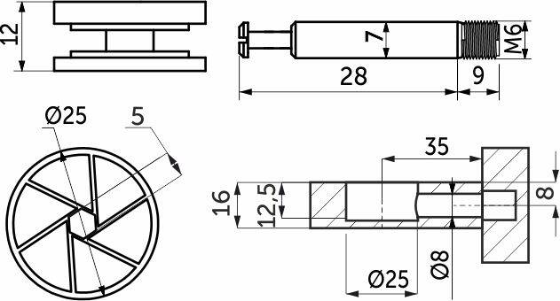Данные стяжки состоят из непосредственно самого эксцентрика и штока соответствующего размера (со стяжкой диаметром 25 мм применяется шток с рабочей длиной 28 мм и резьбой М6).