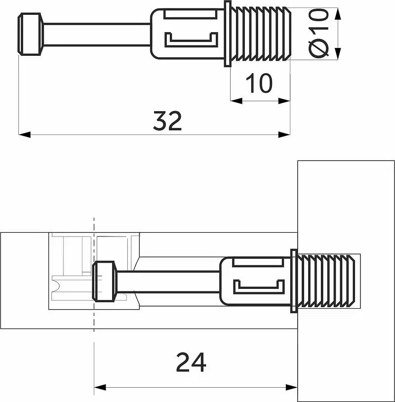 Распорный или забивной шток эксцентрика (шпилька) является составной частью эксцентриковой стяжки и подходит для всех эксцентриков (бочонков) диаметром 12 и 15 мм любой высоты от 10 мм до 17 мм.
