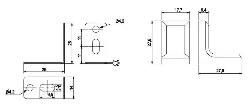 Данные уголки имеют металлическую основу и комплектуются пластиковыми крышками. Крышки могут быть в различных цветовых исполнениях под разный цвет ДСП. Это прочное соединение, которое имеет приятный эстетический вид.