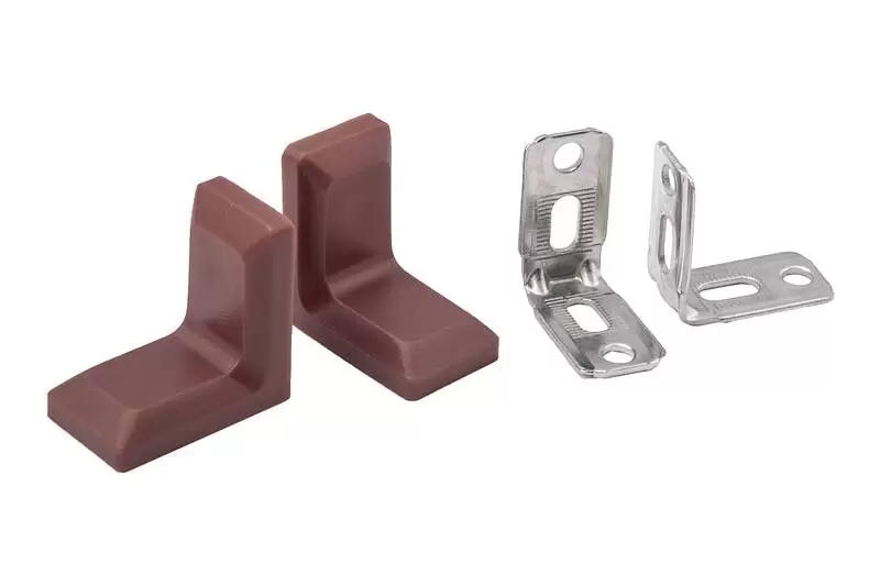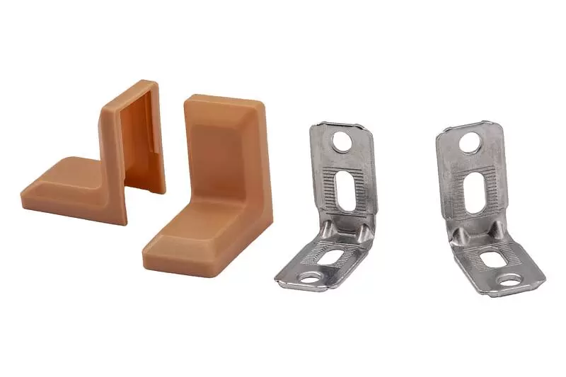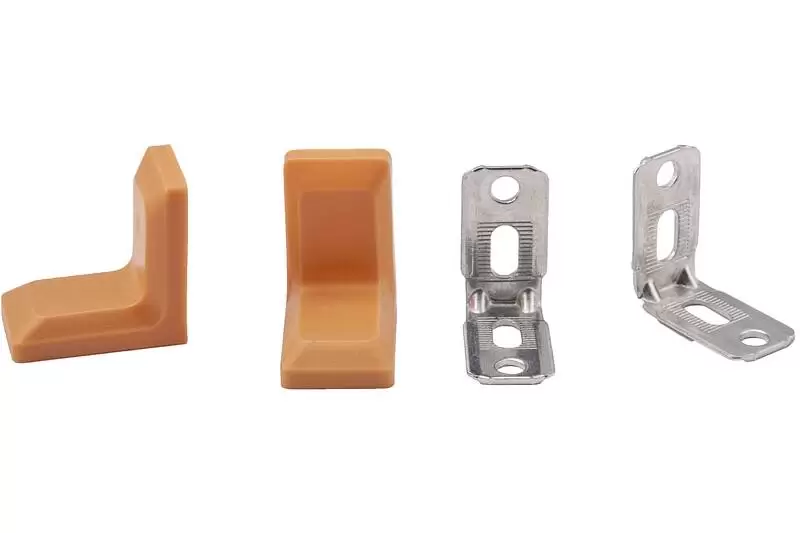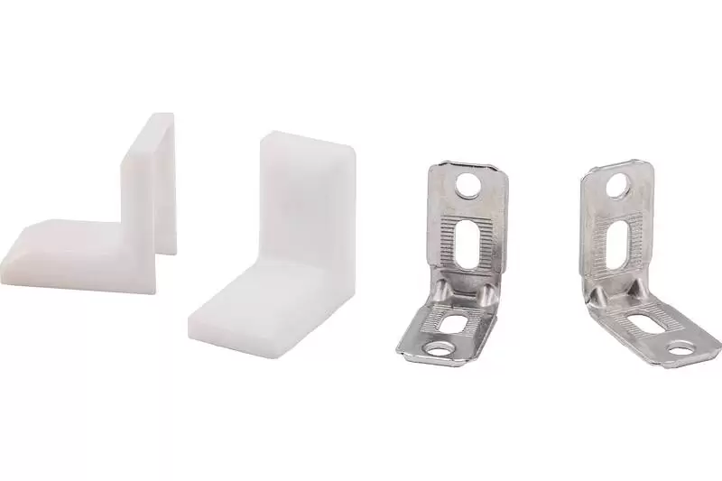 Данные уголки имеют металлическую основу и комплектуются пластиковыми крышками. Крышки могут быть в различных цветовых исполнениях под разный цвет ДСП. Это прочное соединение, которое имеет приятный эстетический вид.