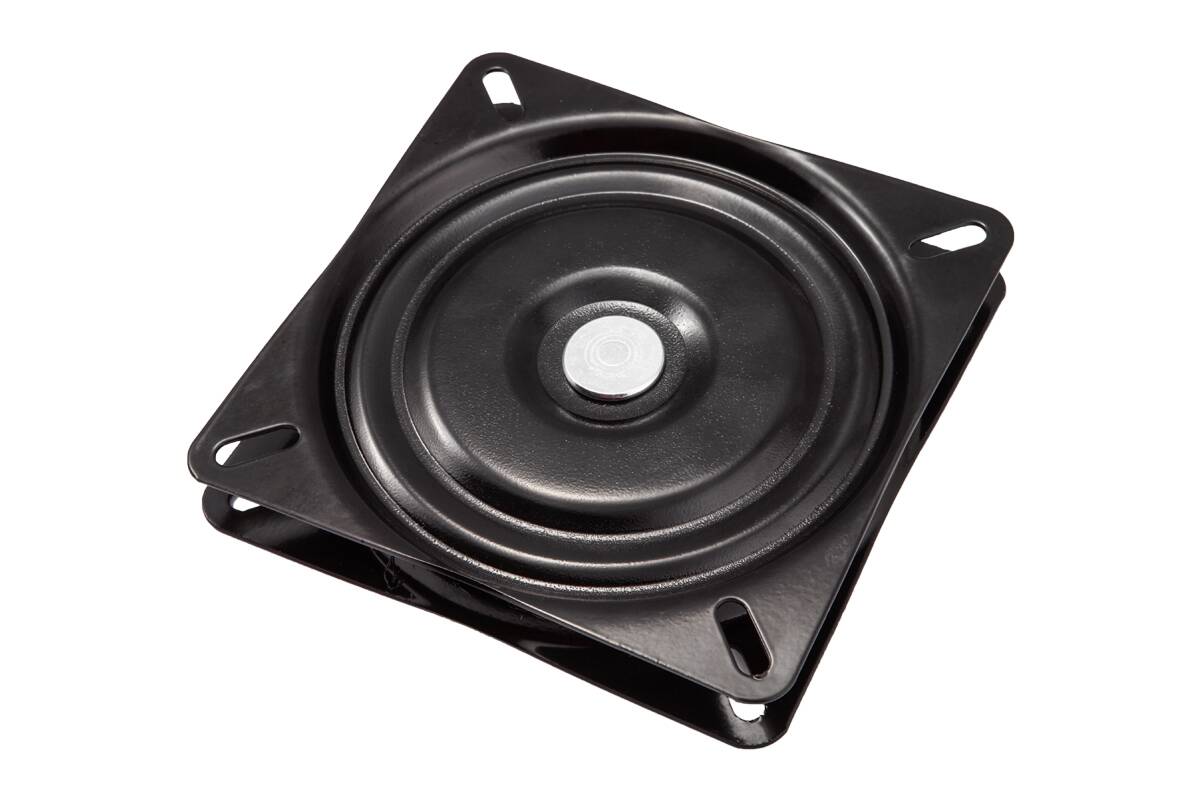 Используется для соединения элементов мебели, которые вращаются по оси относительно друг друга в горизонтальном положении. Ширина-150 мм. Длина-150 мм. Толщина - 1,5 мм, полный подшипник. Нагрузка до 80 кг. Цвет: черный.