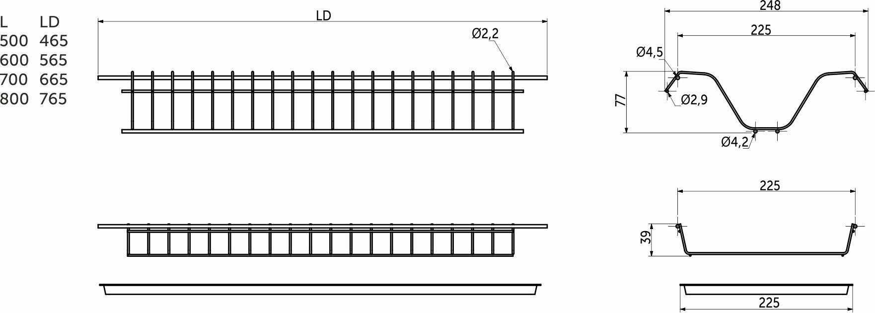 Сушка имеет прут d2,2/4,5мм. Данную модель сушки можно устанавливать в ящик только под ДСП 16 мм. Покрытие – порошковое.